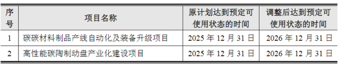 受此影响,天宜新材将上述两大募投项目达到预定可使用状态的日期从2025年12月31日延期至2026年12月31日。