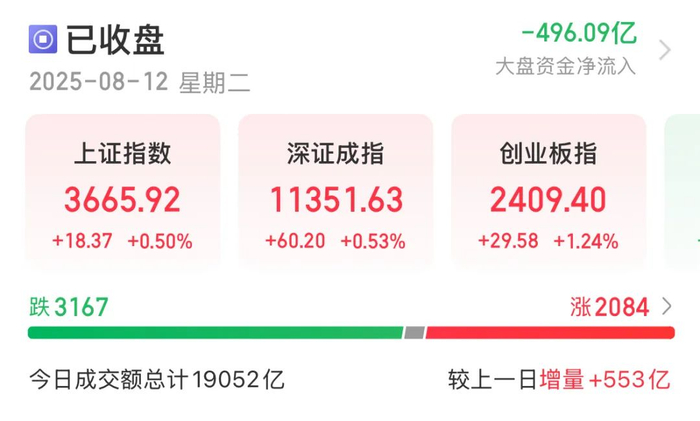 沪深京三市成交额19052亿元,较上日放量553亿元。全市场超2000只个股上涨。