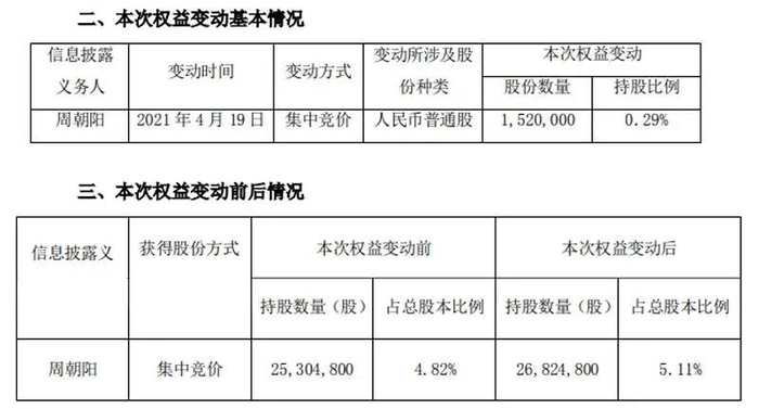据查,周朝阳首次亮相是在长城影视2020年三季报中,其以495.24万股持股位居公司第三大股东,持股比例为0.94%。截至举牌前,其持股数高达2530万股。