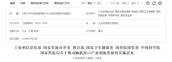 具体来看,国家层面政策方面,今年7月23日,工业和信息化部等七部门联合印发了《关于推动脑机接口产业创新发展的实施意见》。提出到2027年,初步建立先进的技术体系、产业体系和标准体系;电极、芯片和整机产品性能达到国际先进水平,脑机接口产品在工业制造、医疗健康、生活消费等领域加快应用。到2030年,形成安全可靠的产业体系,培育2至3家有全球影响力的领军企业和一批专精特新中小企业,构建具有国际竞争力的产业生态,综合实力迈入世界前列。