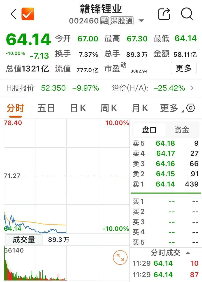 A股市场中,锂电池板块早盘遭遇重挫,赣锋锂业、大中矿业、西藏珠峰、佛塑科技等多股跌停。
