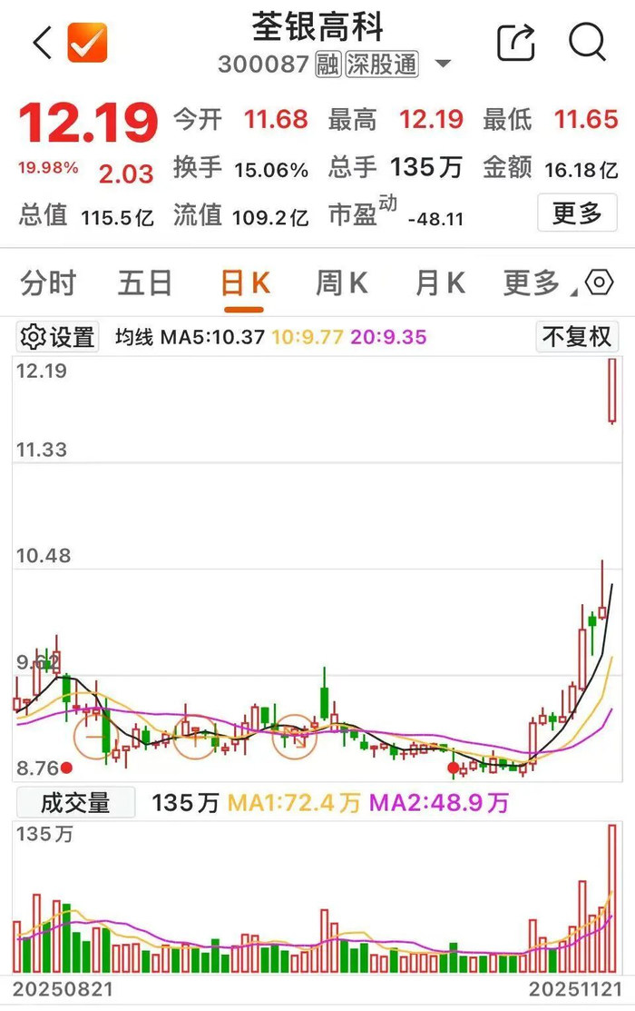 消息面上,荃银高科昨晚公告称,控股股东中种集团拟向除收购人以外的荃银高科全体股东发出部分要约,约占荃银高科已发行股份总数的20%。本次要约收购价格为11.85元/股,较昨日收盘价溢价16.63%。