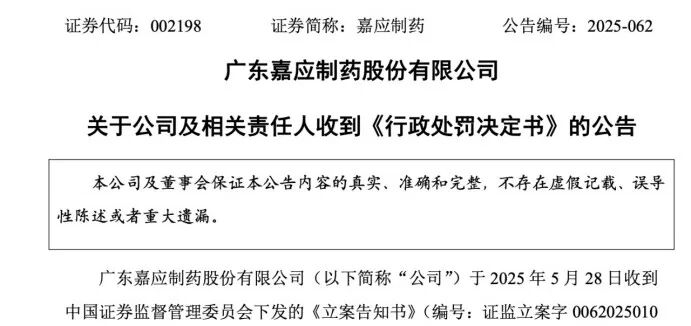2025年5月2日,本报以《上任才一个月,嘉应制药董事长“监守自盗”》为题,报道了公司内控中存在的关联方资金占用及关联交易未及时披露问题,引发市场广泛关注。5月28日,嘉应制药收到证监会下发的《立案告知书》。