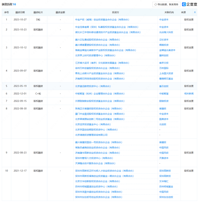 企查查显示,数盾科技发展史上曾获得不少创投机构支持。其最新一轮融资为2023年10月完成的D轮融资,由中金资本投资。在这之前,公司还曾获得光谷烽火科投、云杉资本、南京文投、基石创投、中能智慧、深圳高新投等的投资。