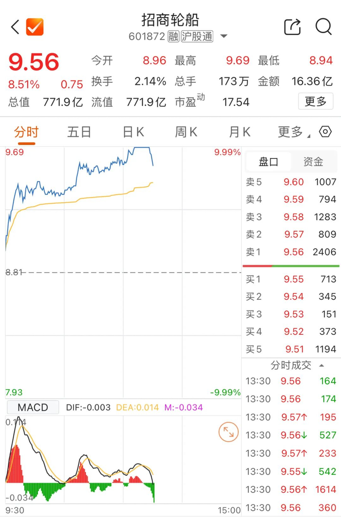 午后,航运板块震荡走强。油运方向领涨,招商轮船(601872)触及涨停,中远海能、中远海特、招商南油等涨幅靠前。