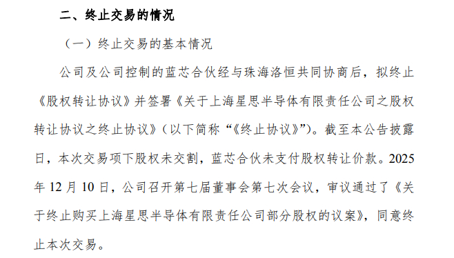 简单回溯。2024年7月26日,公司与珠海洛恒签署《投资意向书》;2024年9月13日,全资子公司蓝芯合伙与珠海洛恒签署《关于上海星思半导体有限责任公司之股权转让协议》。