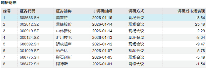 数据显示,千禧年基金今年以来调研了奥普特、恩捷股份、中伟新材、汇川技术、骄成超声等8家A股上市公司。