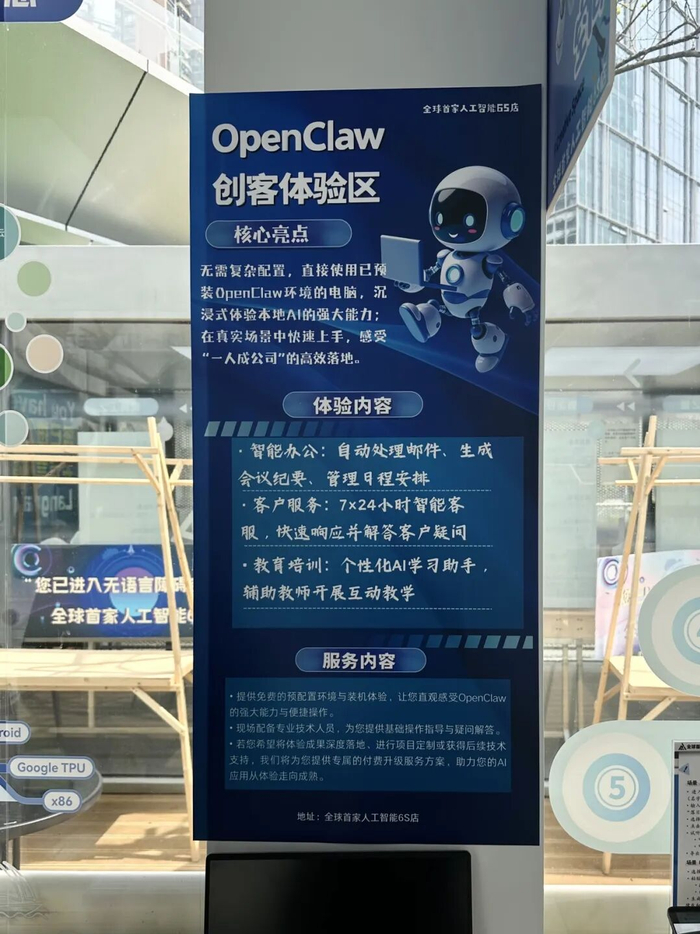 全球首家人工智能6S店内OpenClaw创客体验区 林铭溱摄“这里可以体验搭载各个大模型、装在不同应用上的龙虾。同时,3月11日至3月17日,也可以体验免费装机。”该店店长黄桥告诉记者,目前,店内也正同步应用“龙虾”进行选品分析。