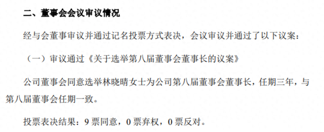11月3日,成都路桥第八届董事会第一次会议召开。会上,林晓晴当选为公司第八届董事会董事长,任期三年。林晓晴于去年5月出任成都路桥董事长;此番再次当选,其仍是四川A股公司最年轻的董事长。
