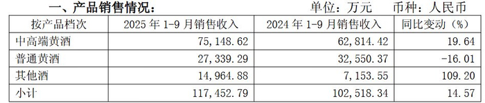 近年来,会稽山持续发力高端化与年轻化双轮战略。高端化方面,依托兰亭系列产品并陆续推出新品,根据会稽山发布的1-9月业绩数据,2025年其中高端产品营收达75148.62万元,同比增长19.64%。
