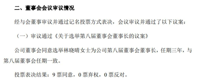 2024年5月,成都路桥宣布补选林晓晴为公司第七届董事会非独立董事。同年5月下旬,她被选举为公司董事长。