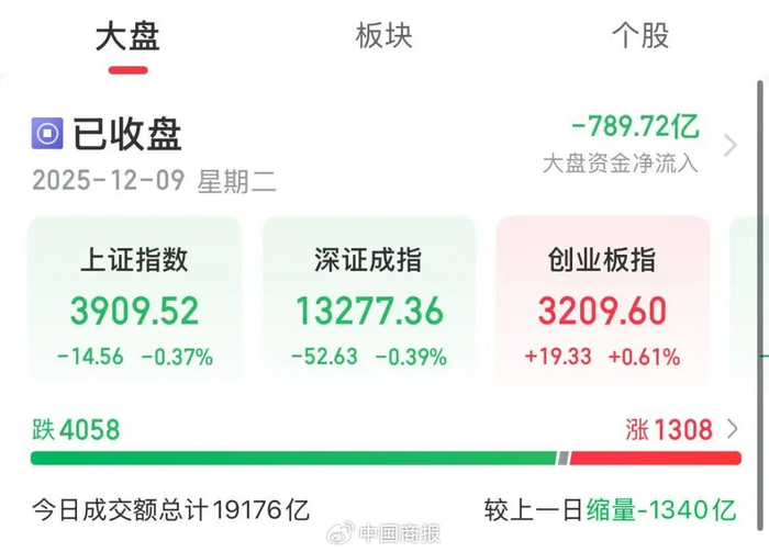 截至收盘,上证指数跌0.37%,深证成指跌0.39%,创业板指涨0.61%,北证50跌1.72%。全市场成交19176亿元,较上一日缩量1340亿元。