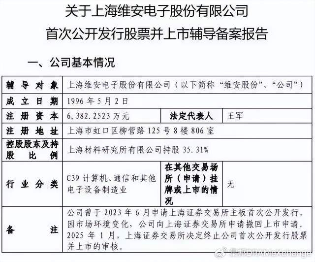 12月8日,上海维安电子股份有限公司(简称“维安股份”)在上海证监局办理了A股上市辅导备案登记,正式启动新一轮IPO进程,此次辅导机构依旧是此前合作过的中信证券。