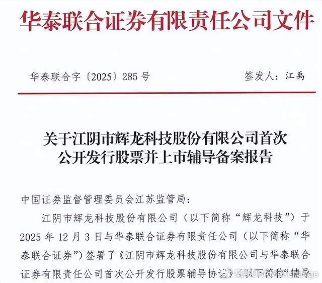 12月9日,江阴市辉龙科技股份有限公司获上市辅导备案登记,拟在A股IPO,辅导机构为华泰联合证券。该公司为半导体设备端工艺气体管路及OEM客户提供定制设计、加热器产品。