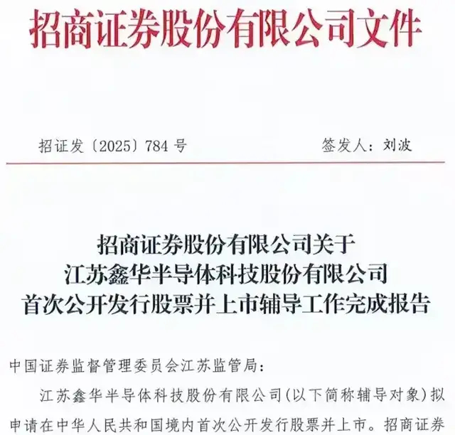 12月11日,证监会网站披露信息显示,招商证券股份有限公司已提交关于江苏鑫华半导体科技股份有限公司(以下简称“鑫华半导体”)的首次公开发行股票并上市辅导工作完成报告。