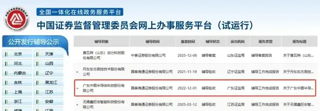 12月6日,证监会官网披露了国泰海通证券关于中图半导体科技股份有限公司科创板IPO的辅导工作完成报告,这意味着该公司的IPO辅导已正式验收通过。