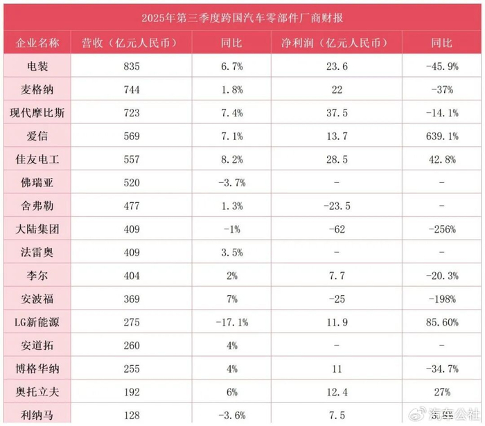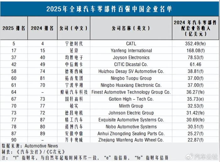 早在年中,《美国汽车新闻》(Automotive News)对外公布的2025年全球汽车零部件供应商百强榜,就已经埋下了伏笔。