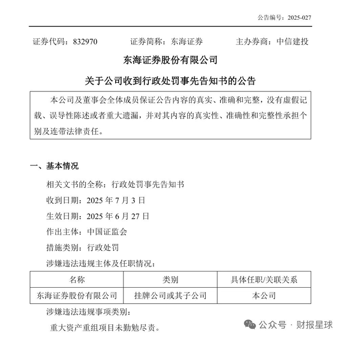 截至目前,东海证券尚未就罚单事项发布专项公告。但据接近公司人士透露,管理层已紧急召开风控会议,不排除对当年项目组启动追责程序。而这场跨越十年的监管追责,或许只是券商行业“秋后算账”的开始——据不完全统计,目前仍有至少12家券商涉及2015-2018年期间的存量项目被立案调查。