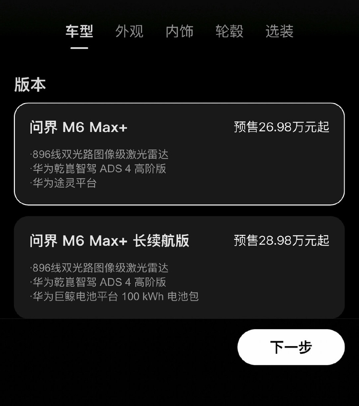 北京商报记者在鸿蒙智行线下门店看到,目前搭载896线双激光雷达的车型暂未到店。销售人员向北京商报记者介绍,搭载896线双激光雷达的车型相比现款需要更换硬件,理论上都可以实现,但更换硬件还需要进行相关报备流程,后续能否在M7等车型上实现暂时无法确定。