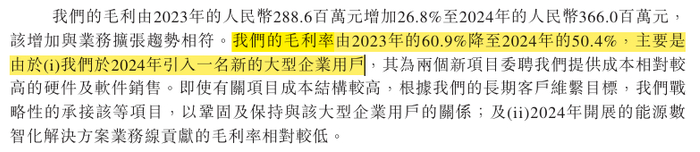 毛利率为何持续下滑?招股书披露,毛利率下滑的核心原因有两点:一是2024年引入一名大型企业客户,为巩固合作关系,公司承接了多个成本较高的硬件及软件销售项目,导致硬件及软件销售业务的毛利率从2023年的28.3%骤降至2024年的5.2%;二是2024年新增的能源数智化业务毛利率较低,拉低了公司整体盈利水平。