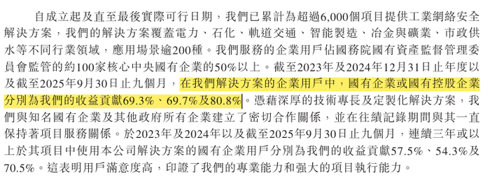 资料来源:天地和兴招股说明书国企客户贡献的营收占比在2025年前三季度达到80.8%,连续三年以上使用其解决方案的国企用户贡献了70.5%的营收。