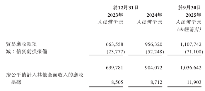 招股书数据显示,截至2023年末、2024年末与2025年9月末,天地和兴的贸易应收款项账面余额分别为6.64亿元、9.75亿元与11.08亿元,规模持续大幅增长。截至2025年9月末,公司贸易应收款项余额占当期资产总额17.04亿元的比例高达65.02%,成为公司资产端最核心的构成部分。