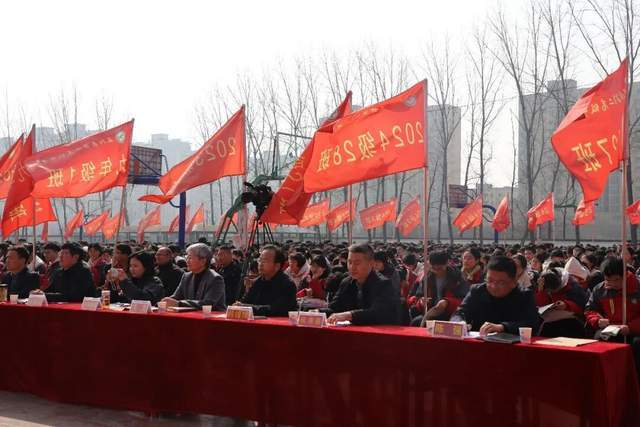 正阳县教育局党组书记、局长熊灵的讲话振奋人心。她高度肯定了正阳二高作为县域高中排头兵的突出贡献,并向全体师生致以春天的问候。