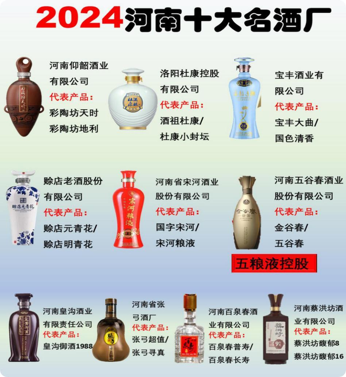 河南的主流及知名白酒品牌有豫酒“金花”级的仰韶酒、杜康酒、宝丰酒、宋河酒、赊店老酒、皇沟御酒、五谷春酒、张弓酒,其他像林河大曲、富平春、红旗渠酒、卧龙玉液、蔡洪坊、姚花春、双桥酒等白酒品牌多达50余家,但这些白酒品牌中竟然没有一家上市酒企。