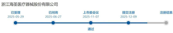 11月7日,医疗器械企业海圣医疗在北交所成功过会,并于12月9日提交注册。