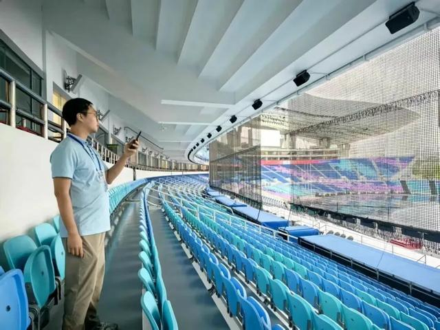 图:第十五届全国运动会前,珠江文体工作人员在检查场馆设施