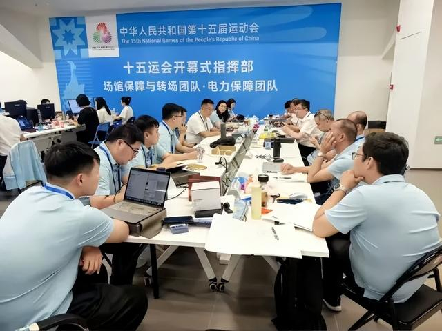 图:第十五届全国运动会开幕式前,珠江文体团队工作场景