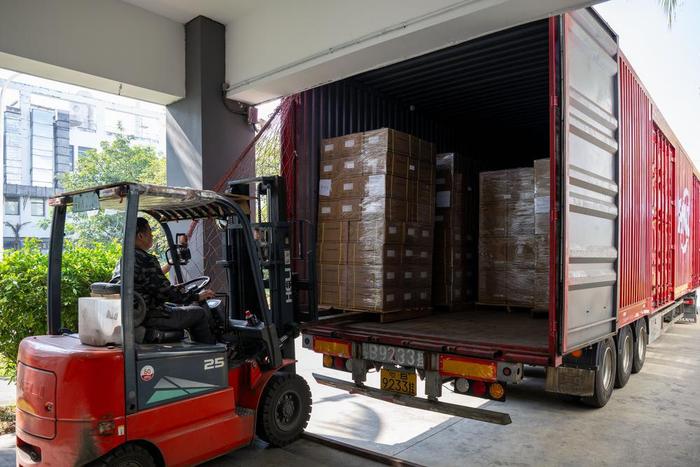 12月18日上午,来自维力医疗的超41万支“一次性使用乳胶导管”从新海港“二线口岸”出岛前往广东湛江徐闻港,而后这批货物将抵达广州,和其他货品一同发往海外。