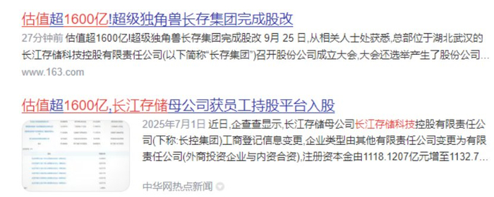 根据胡润研究院最新发布《2025全球独角兽榜》,长江存储以1600亿元估值首次登榜,成为半导体行业价值最高的新独角兽。