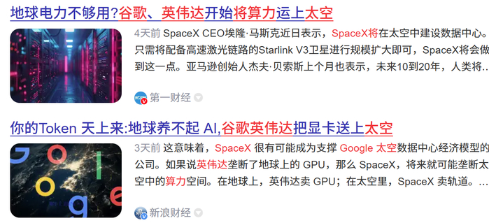 事件4:太空算力—谷歌英伟达SpaceX将建太空算力 算力新一轮炒作