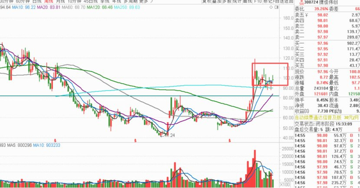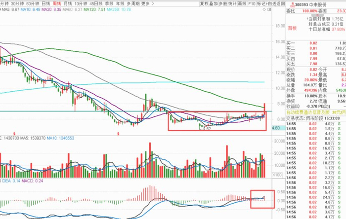 技术分析:从周线上看,公司股价目前处于底部区域,放量大阳线突破了长达8个月的底部平台,打开了上行的空间。但暂时受阻于周年线250周均线的压制,短期会维持高位震荡,等待60周均线上穿120周均线,抓住回踩低吸机会。股价6元出头,市值不到百亿,中小盘低价地位,有成为跨年妖股的潜质。