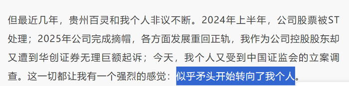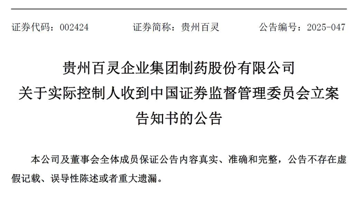 《立案告知书》发布后,贵州百灵制药表示,本次立案系对公司实际控制人姜伟个人的调查,与公司日常经营管理和业务活动无关,不会对上市公司及子公司生产经营活动产生影响。立案调查期间,姜伟先生将积极配合中国证监会的立案调查工作。