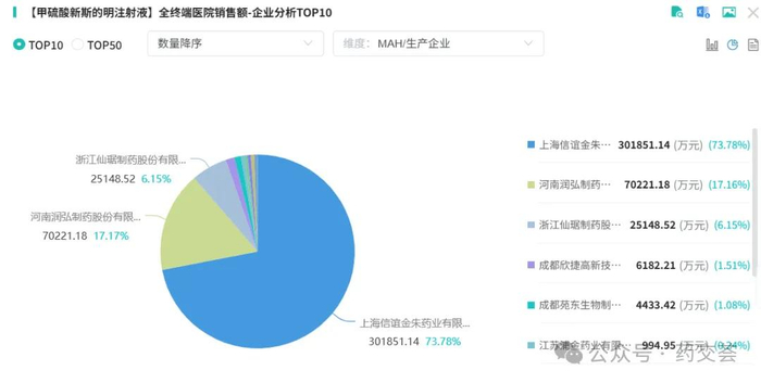 而看回此次被暂停采购的上海信谊金朱,不仅与上述上海信谊联合同为上药孙公司,更是目前甲硫酸新斯的明注射液市场份额最大的企业。