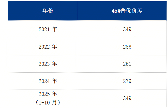 表1:2021-2025年普优价差情况(单位:元/吨)