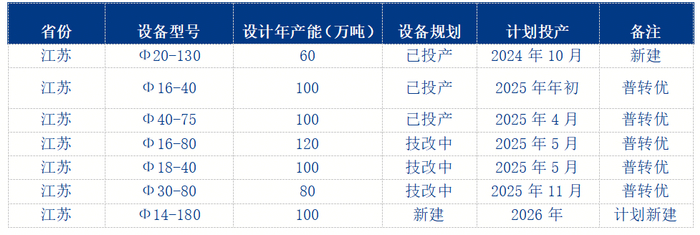 表2:2024年-2026年间江苏新建及普转优产线统计