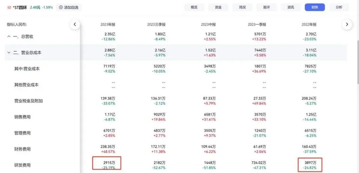 技术研发严重“偏科”。对于一家药企来说研发是命根子。四环生物在研发资金方面十分吝惜。数据显示2022年其研发投入占比仅为14.42%,到了2023年占比仅为12.40%。
