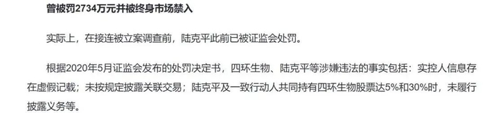 他隐瞒自己被抓的事实,从而令到四环生物和另一家公司江苏阳光2020至2023年的年报违法披露。