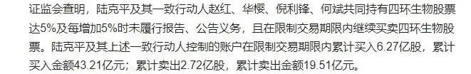 “隐身”式潜入,隐秘实现控股:陆大佬在2014-2018年间借助控制13个证券账户和2个权益工具,联合赵红、华樱等所谓的一致行动人不断增持四环生物。全程隐藏自己的实际控制人身份,像一个“隐形”的皇帝在幕后操纵一切。