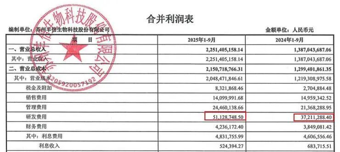 上市告知书提及,丰倍生物今年前9个月花在研发上的费用高达5112万元,远超去年一整年的3721万元,可以用说是大手笔“砸”在研发上,可见其对技术的重视。