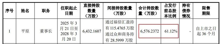 图源:招股书换而言之,企业上市前后,作为创始人的平原,拥有绝对的企业话语权。他累计所持的股票也超6576万股,占发行前总股数的比例超六成。