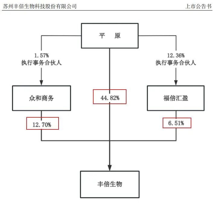 图源:企业官网从招股书上的信息披露,丰倍生物创始人平原在IPO之前持有公司合计85.4%的股权,是实控人。