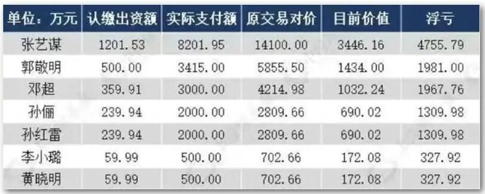像张艺谋、邓超夫妇、郭敬明等十余位明星都曾入资,如今看来,巨亏超上千万的也不少,要是以前没套现的话,估计赔得连“底裤”都不剩了。