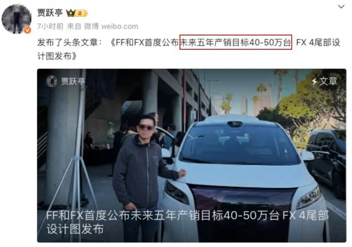 本月初,贾老板在个人社交平台发布长文,称未来五年计划卖出40-50万台车。