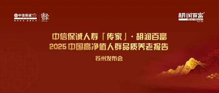2025年12月12日,《中信保诚人寿「传家」∙胡润百富2025中国高净值人群品质养老报告》发布会在苏州隆重举行。众多嘉宾围绕报告主题展开探讨,共同聚焦在国内经济转型升级、人口结构面临少子化与老龄化双重挑战等趋势背景下,中国高净值人群对于品质养老的认知、养老规划的举措和应对养老挑战的方式,深度解读高净值家庭在养老规划、资金配置、服务诉求等方面的真实需求。