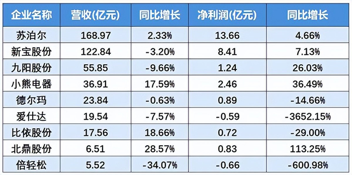 然而,另一部分企业则陷入利润大幅下滑的困境。爱仕达和倍轻松的净利润分别出现3652.15%和600.98%的同比暴跌,苏泊尔、德尔玛、比依股份也出现不同程度的利润下滑。这些企业面临原材料成本上升、市场竞争加剧、库存压力增大等多重挑战,利润空间受到严重挤压。