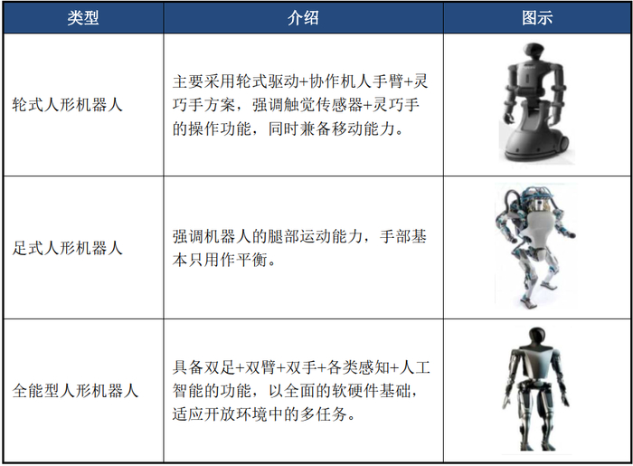 图表1 人形机器人主要类型